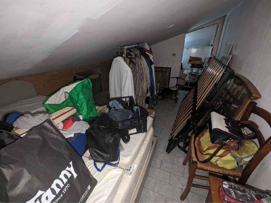 proprietà su immobile costituito da appartamento posto al piano sottotetto composto di vani 4 con bagni per circa 90 mq.. in pessime condizioni manutentive, con rifiniture scarse ed altezze interne limitate. presenza di difformità sanabile con spesa di €.4.000.
