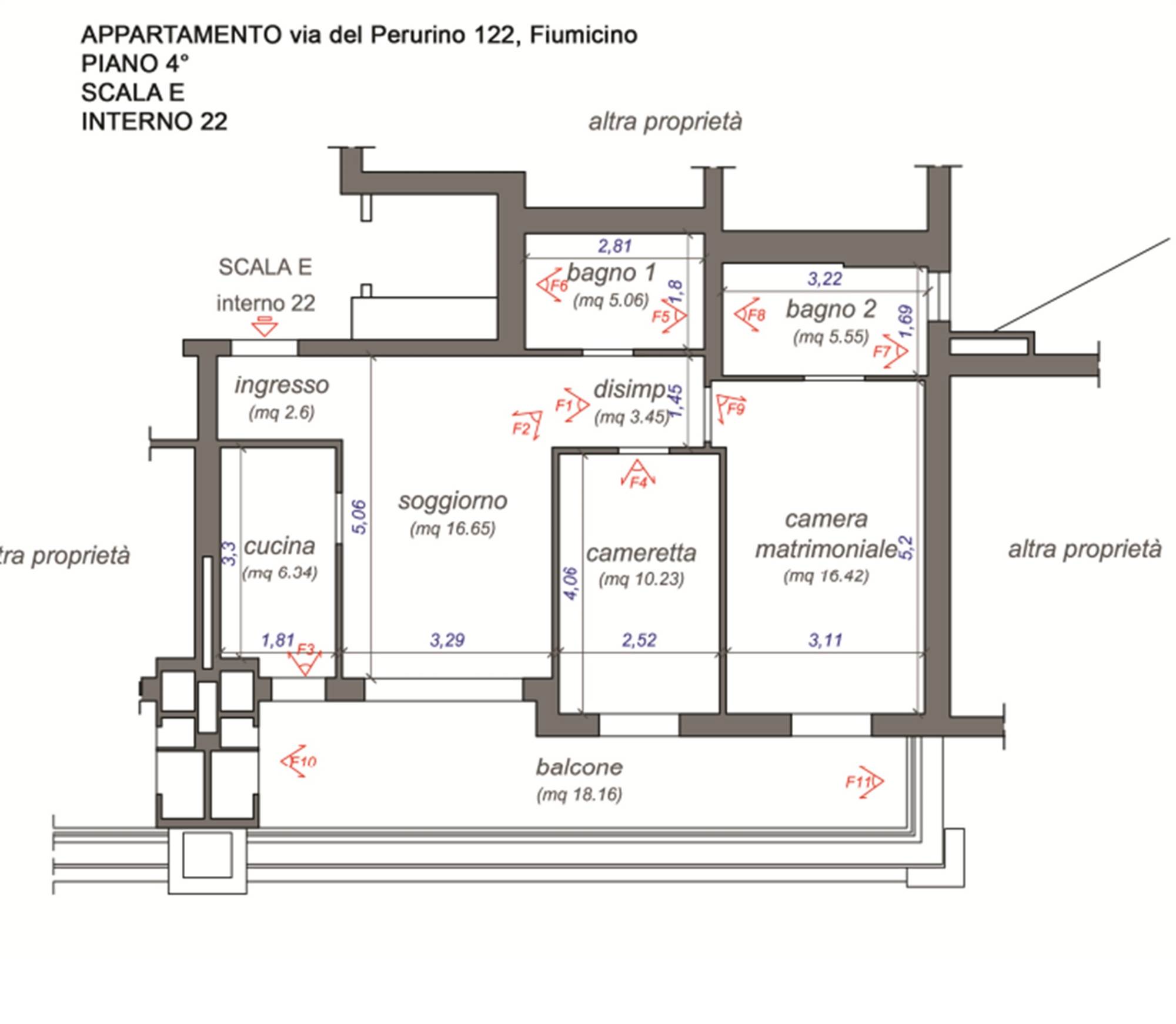 PIENA PROPRIETA’ appartamento posto al piano quarto di uno stabile a otto piani fuori terra e un garage situato al primo piano seminterrato (S1). L’appartamento si trova in Fiumicino (RM), via del Perugino n° 122, interno 22, scala E