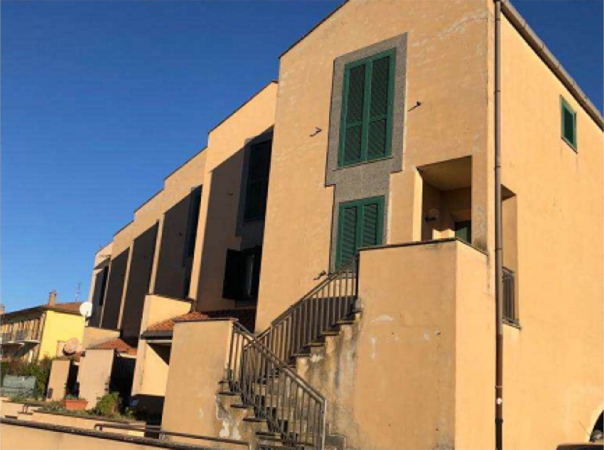 piena proprietà di abitazione con annesso garage al piano interrato, sita in sutri, via i° maggio civico 23, distinta al nceu di detto comune al f. 6 p.lla 1049 sub 26. al garage si accede tramite rampa condominiale. rilevata minima difformità tra planimetria catastale e l’effettivo stato di fatto. vi sono dei costi per la costituzione della servitù di passaggio sull’area comune. immobile libero
