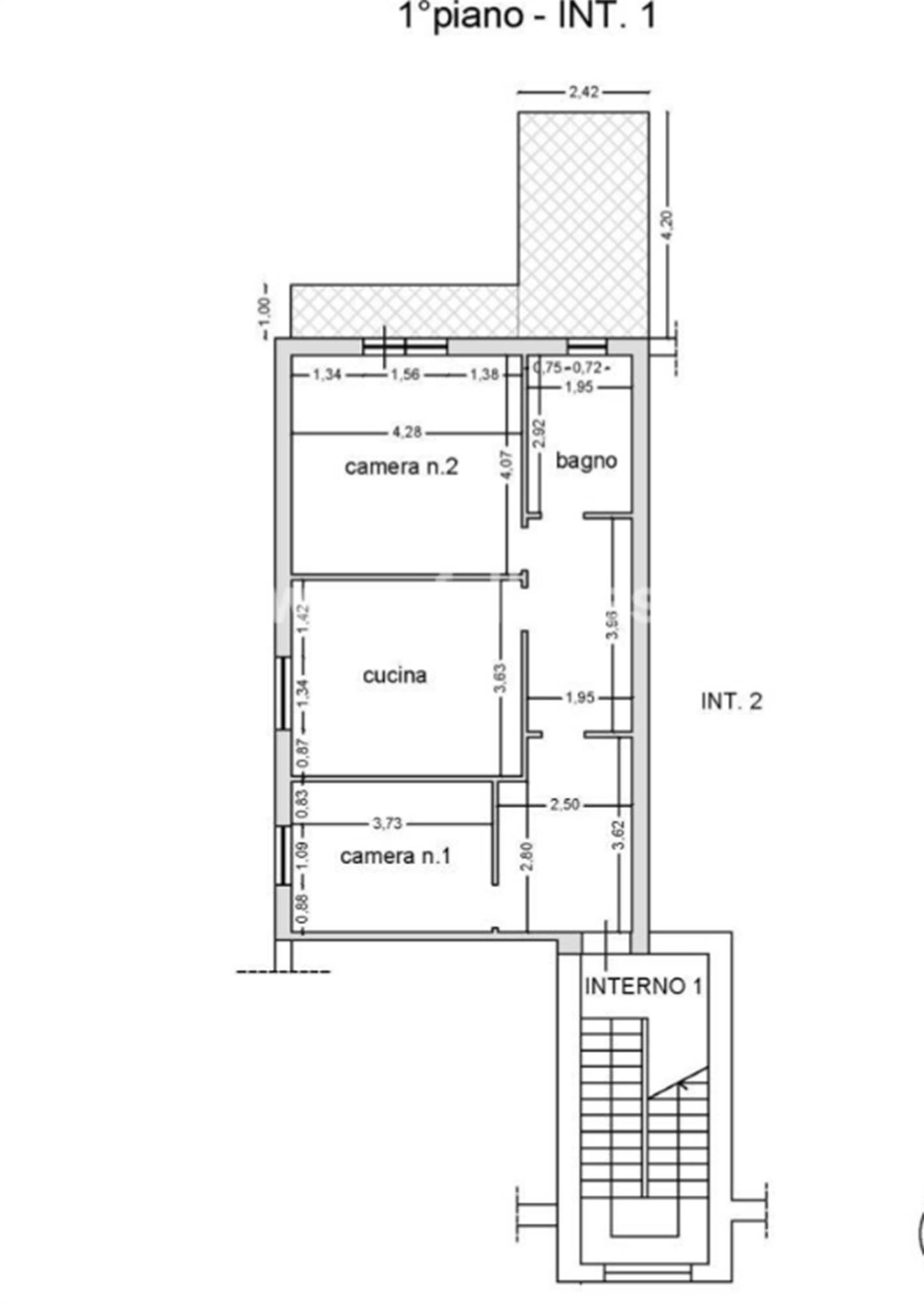 appartamento sito al piano 1, composto da ingresso, cucina, disimpegno, due camere, bagno e balcone, per complessivi mq. 75,50 convenzionali