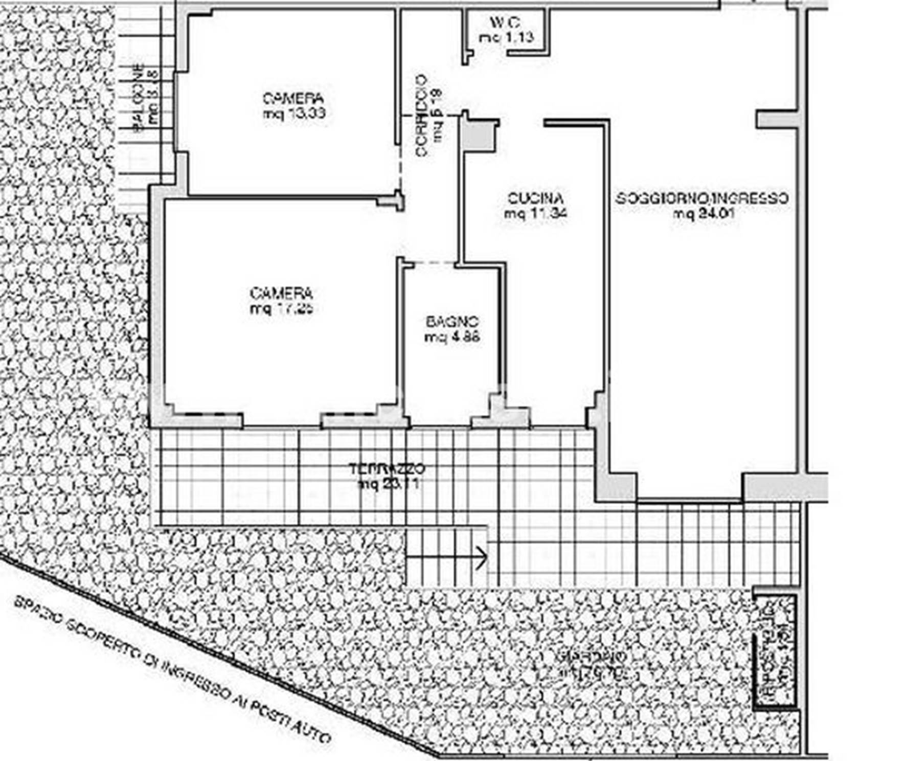 Quota pari ad 1/1 del diritto di piena proprietà sul seguente compendio immobiliare sito in Roma e precisamente - appartamento in via Argentina Altobelli, 30 al piano rialzato, distinto con interno 2, composto da soggiorno/ingresso, cucina, wc, corridoio, due camere da letto e bagno con annessi un giardino, su cui insiste un ripostiglio, e due superfici scoperte poste a quota più alta del giardino, di cui una accessibile dalla camera più piccola e l’altra dalla cucina, dalla camera più grande e dal soggiorno.