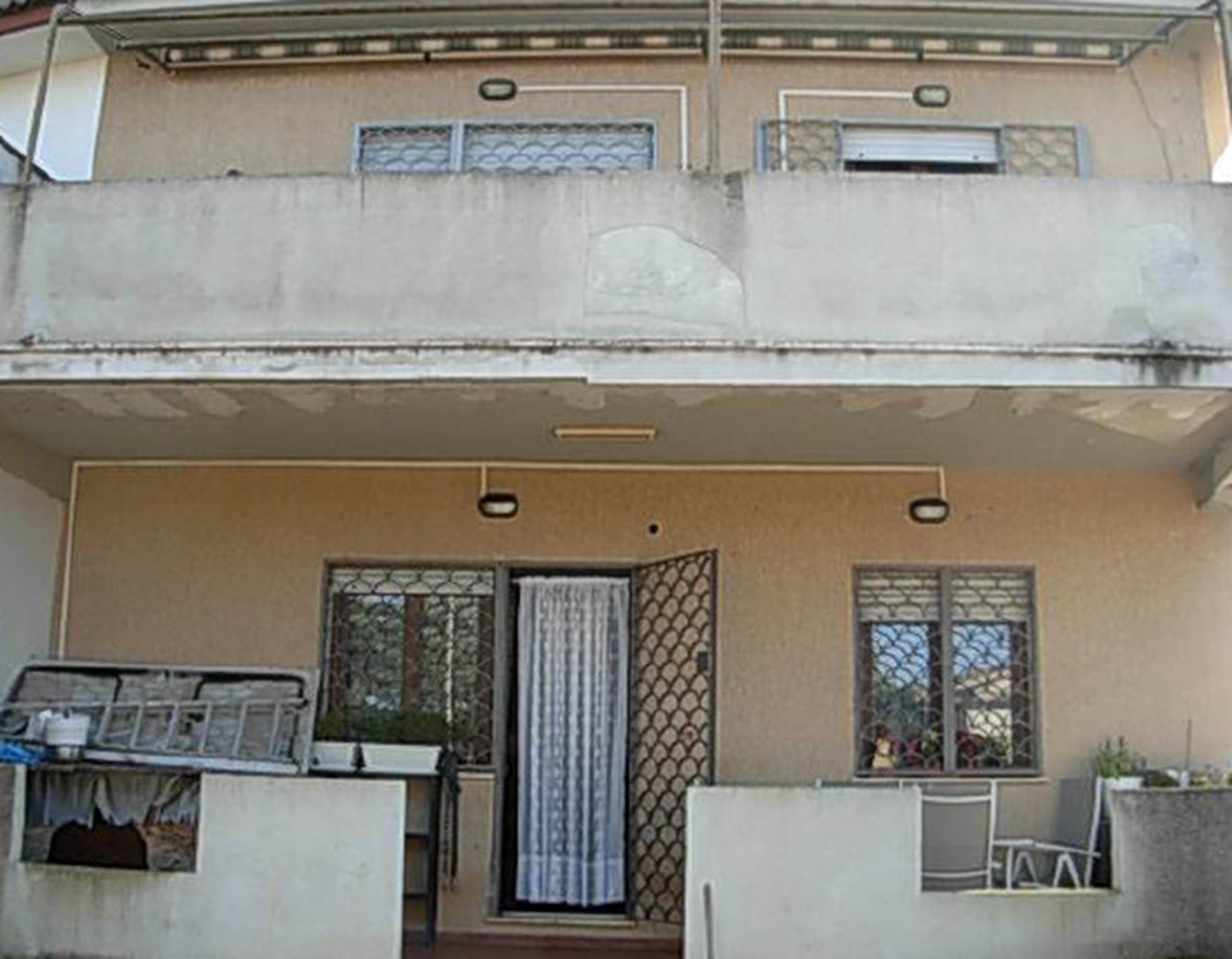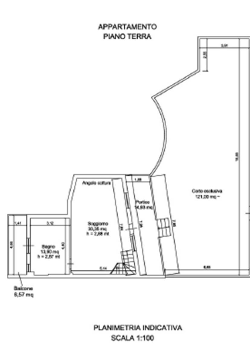 appartamento ai piani terra-primo, con annessa corte esclusiva, composto da un soggiorno con angolo cottura, un bagno, un portico e un balcone al piano terra, e da tre camere da letto, un bagno, disimpegno e due balconi al piano primo.