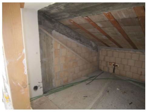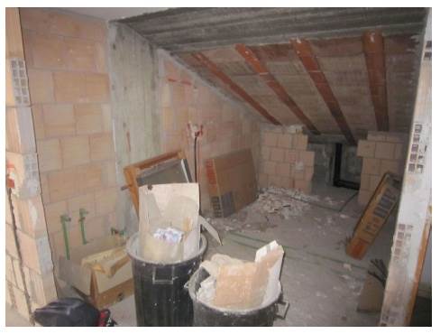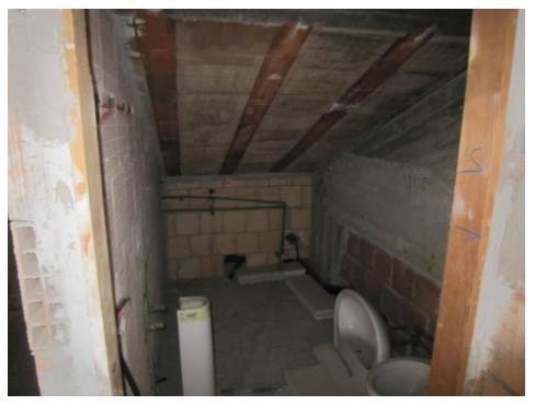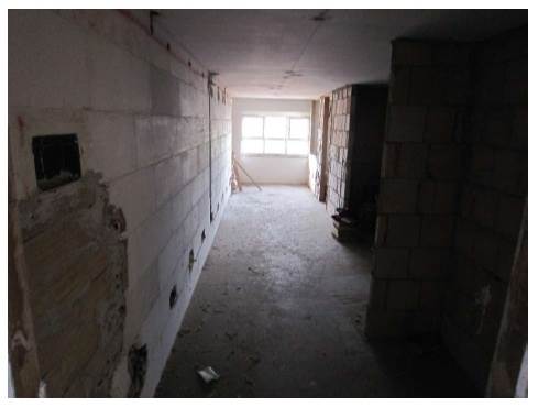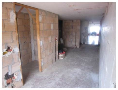 cantina allo stato grezzo formata da un corridoio con altezza interna pari a 2.17 m, con ununico finestrone posizionato nella parte finale, da un ambiente 1 con wc e un ambiente 2.