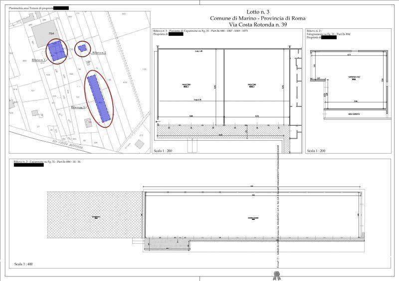 n.8 terreni agricoli di 6113,00 mq ubicati a marino (rm) - via costa rotonda n. 39, località frattocchie, qualità vigneto. privi di colture e urbanizzati con piazzali, strade e aree a servizio della zona industriale, oltre che alcuni manufatti, realizzati senza alcun titolo edilizio. su tali terreni insistono n.1 capannone industriale di circa 450,00 mq, un manufatto di circa 170 mq e n.1 capannone industriale di circa 1.050 mq, privi di titolo edilizio.