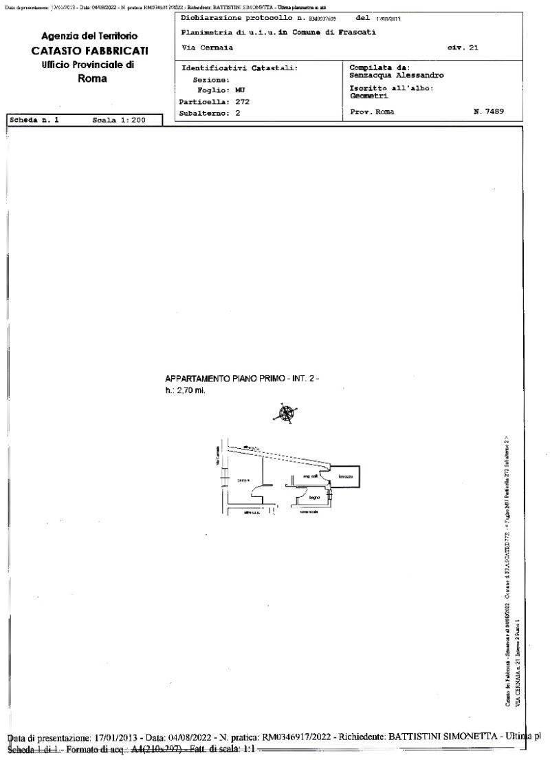 APPARTAMENTO FRASCATI VIA CERNAIA
