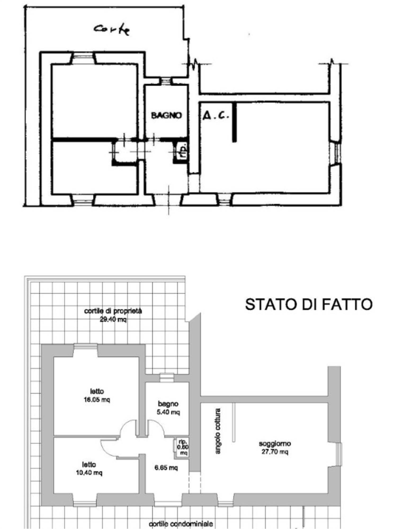 appartamento su un unico livello, composto da un ingresso, soggiorno con angolo cottura, piccolo ripostiglio, bagno e due camere da letto. completa la proprietà un cortile esterno, in parte di uso condominiale e in parte di proprietà esclusiva, con una superficie netta di 29,40 mq. superficie lorda complessiva, abitazione e corte, pari a 90,50 mq.